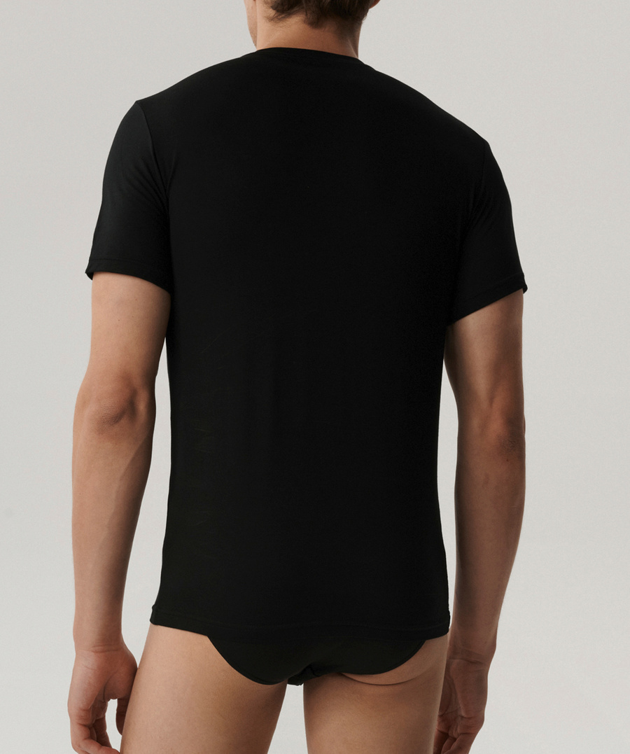 Acest tricou pentru bărbați de la Atlantic combină moliciunea excepțională cu funcționalitatea excelentă. Fabricat din bambus mătăsos, acesta oferă confort atât pentru purtarea de zi, cât și de noapte. Tăietura sa clasică, combinată cu culoarea neagră versatilă, înseamnă că se va potrivi cu orice ținută, garantând libertate de mișcare și confort maxim.