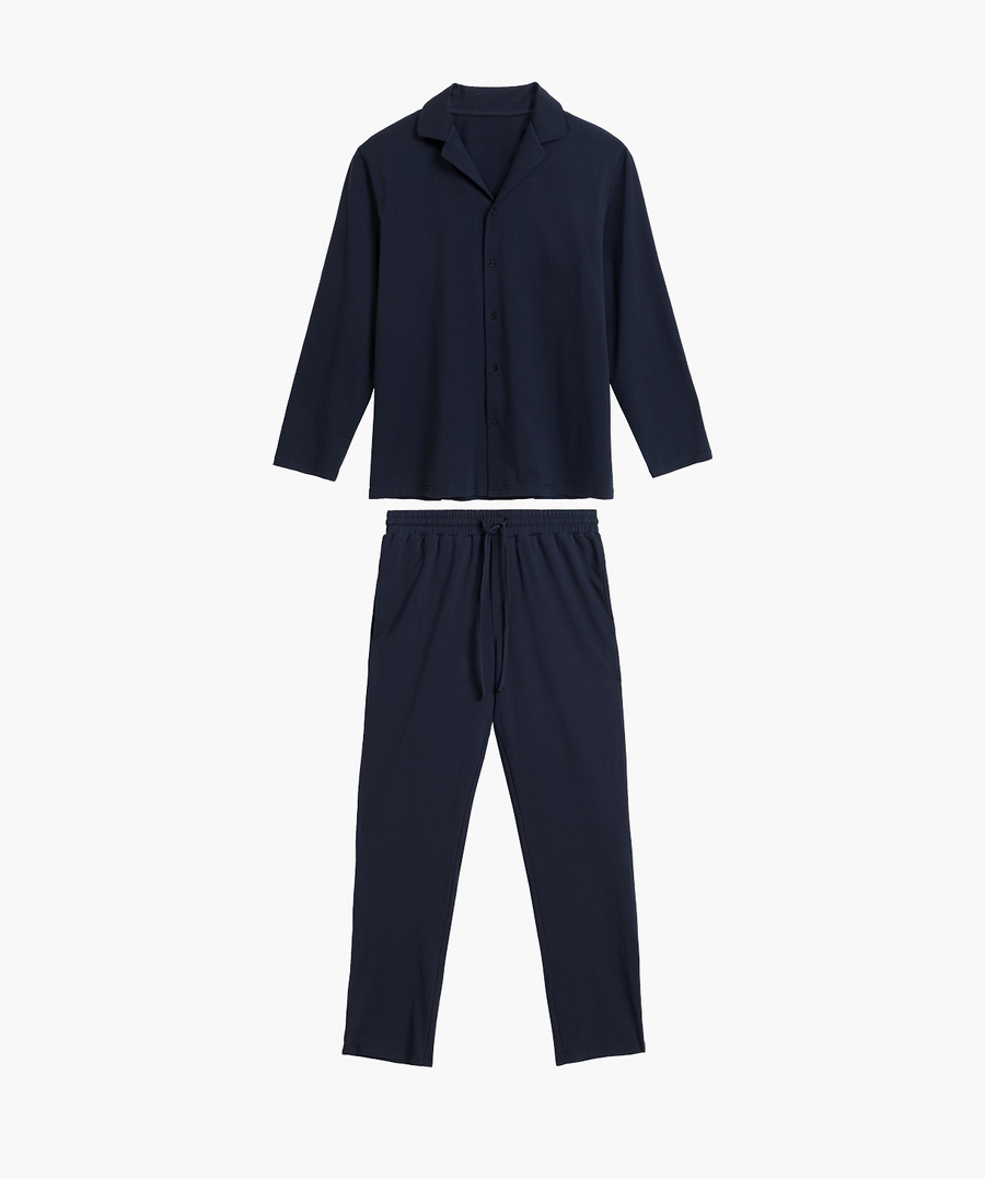 Descoperiți pijamaua de bărbați excepțională BNMP-001 de la renumitul producător Atlantic, care combină **cea mai înaltă calitate**, **confortul de neegalat** și **stilul modern**. Într-o nuanță profundă de albastru marin, această pijama elegantă este alegerea perfectă pentru nopțile de primăvară și vară, oferind nu numai confort, ci și un aspect unic.