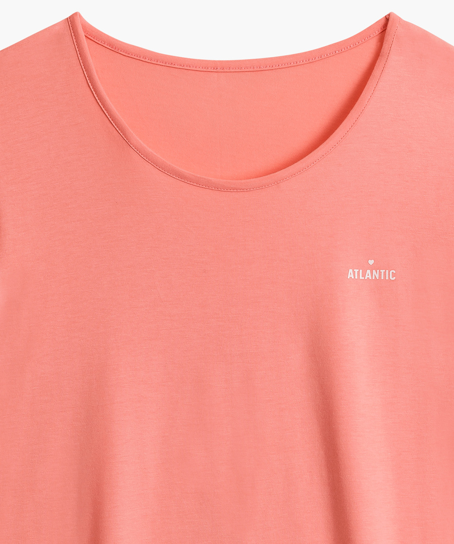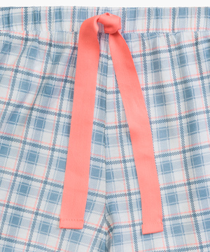 Pijamaua constă dintr-un tricou lejer cu mâneci scurte, decorat cu un logo Atlantic subtil, și pantaloni scurți cu un model în carouri la modă. Înălțimea universală a taliei și papionul lat asigură o potrivire perfectă pe care fiecare femeie o va aprecia. Culorile frumoase îi subliniază caracterul unic, iar modelul ușor îl face alegerea perfectă pentru vară.