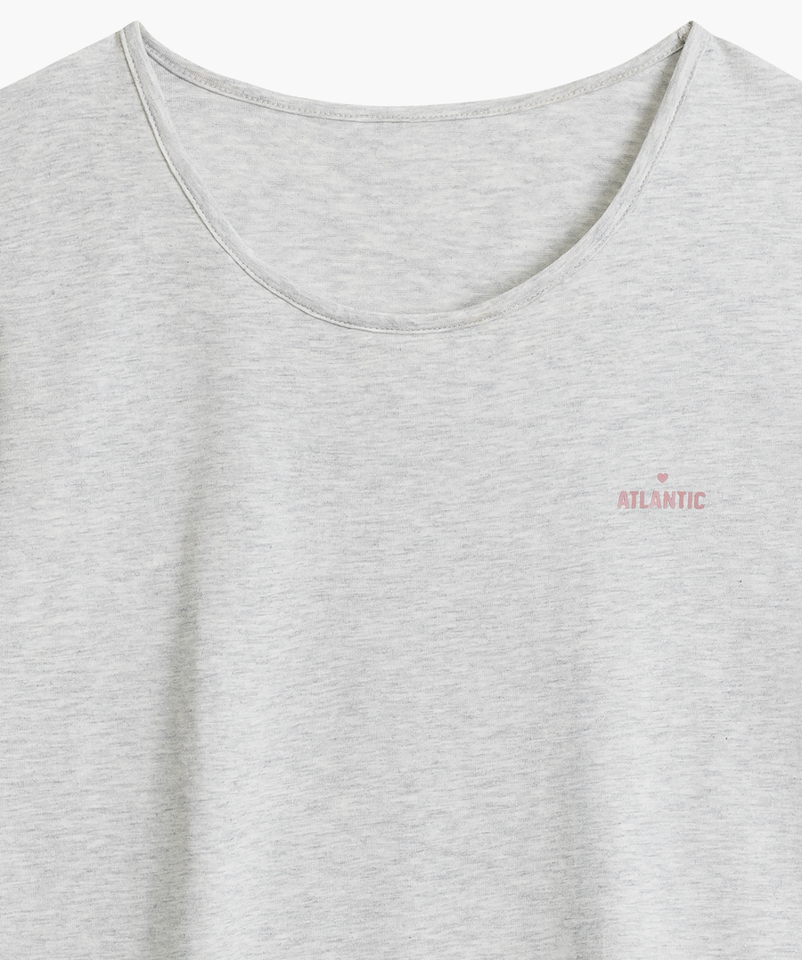 Pijamaua constă dintr-un tricou lejer cu mâneci scurte, decorat cu un logo Atlantic subtil, și pantaloni scurți cu un model în carouri la modă. Înălțimea universală a taliei și papionul lat asigură o potrivire perfectă pe care fiecare femeie o va aprecia. Culorile frumoase îi subliniază caracterul unic, iar modelul ușor îl face alegerea perfectă pentru vară.