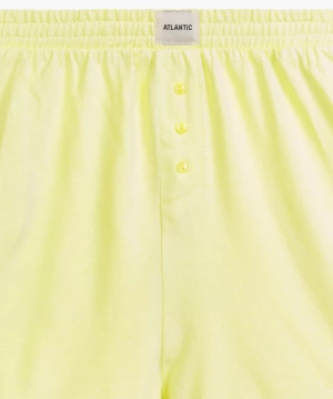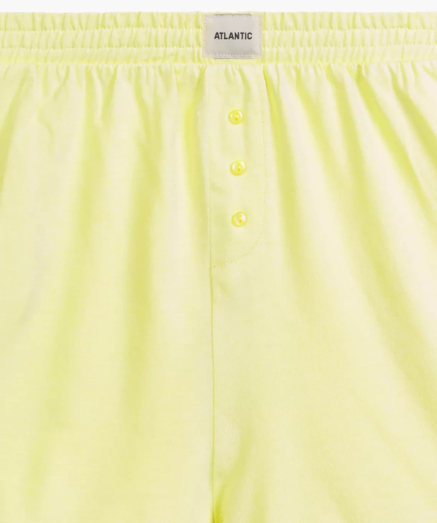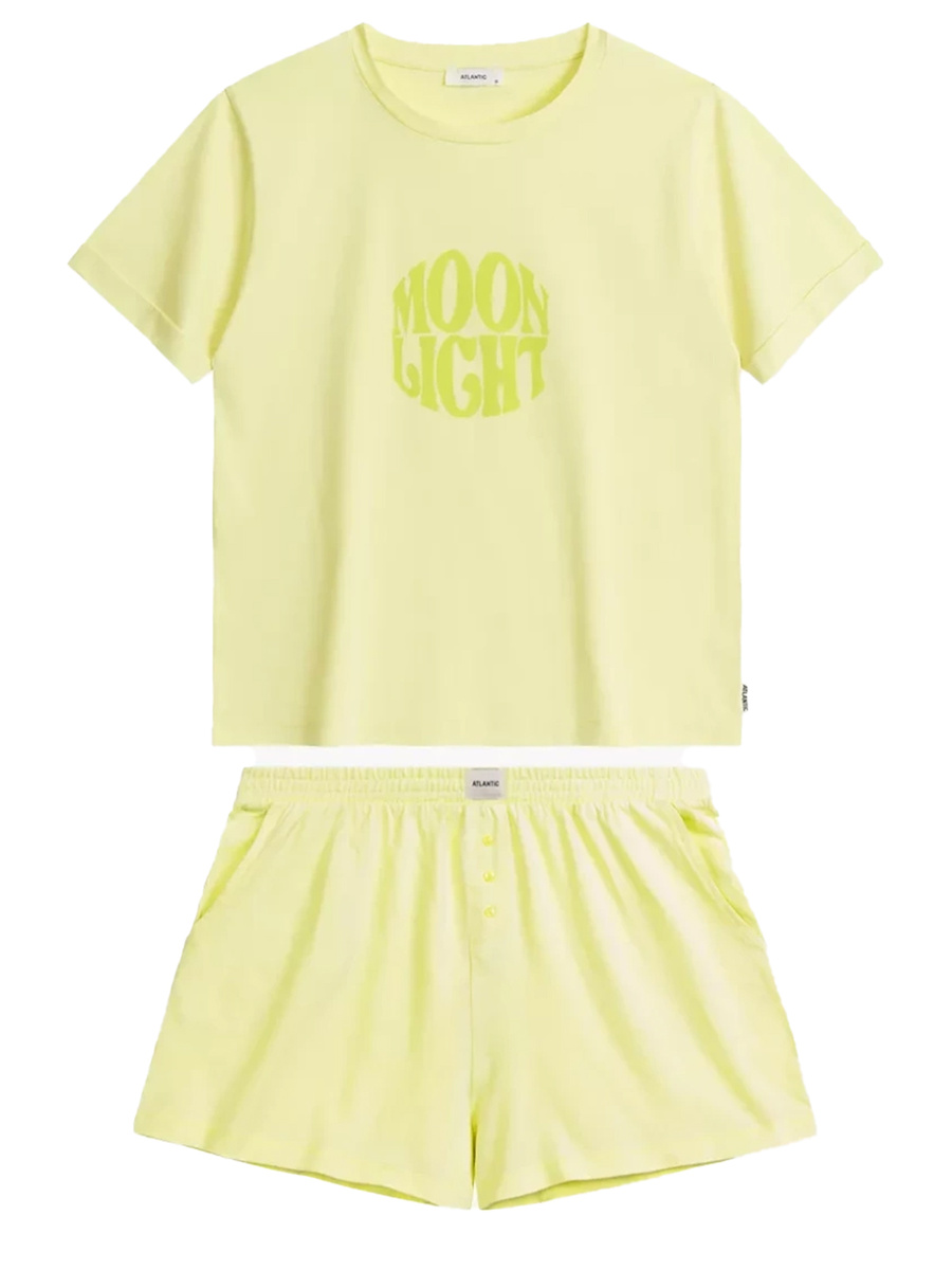 Pantalonii scurți cu buzunare laterale nu sunt doar o soluție practică, ci garantează și o libertate completă de mișcare. Talia elastică fără presare, decorată cu un logo subtil Atlantic, asigură o potrivire perfectă pentru orice siluetă, făcând din această pijama cadoul perfect pentru o persoană dragă.