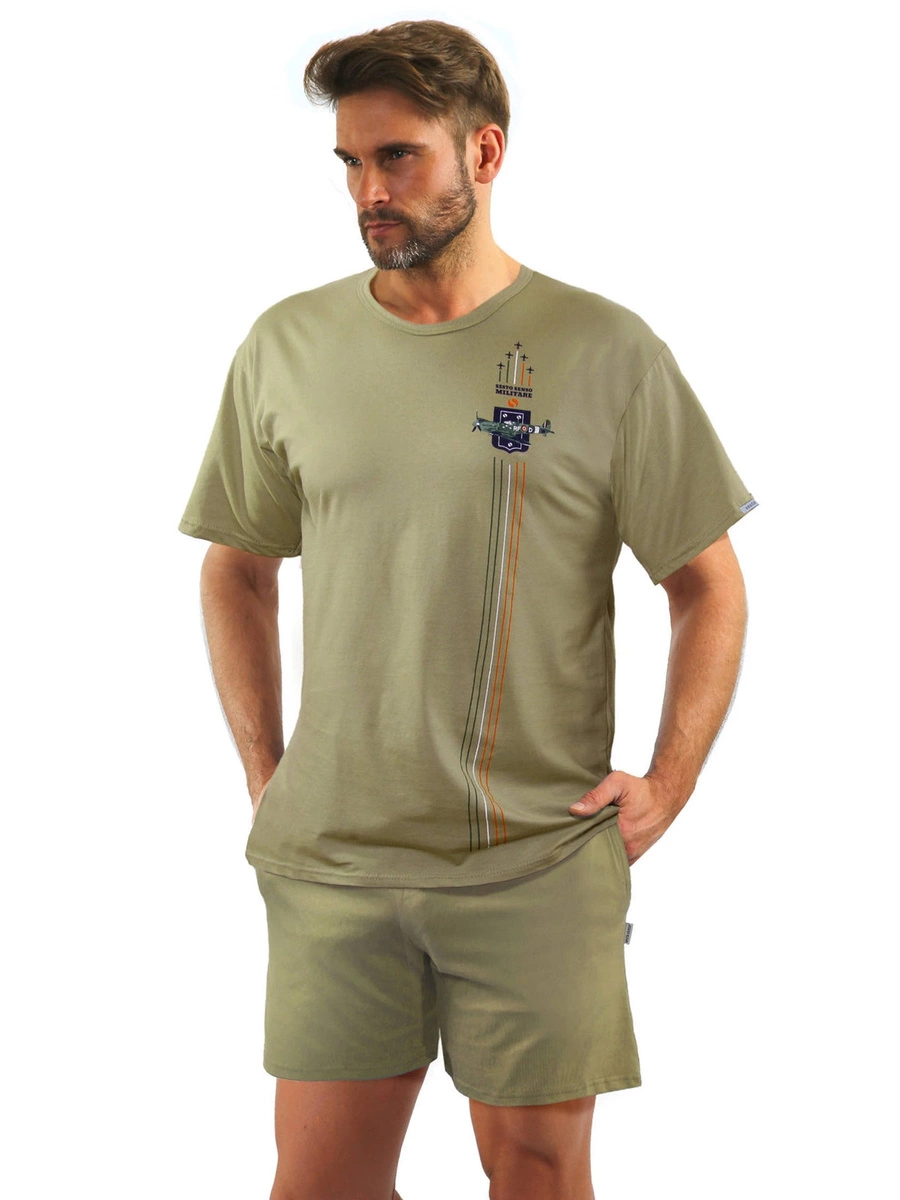 Pijamaua este compusă dintr-o cămașă cu mânecă scurtă de culoare albastru marin și pantaloni scurți la modă, cu un model Madras check. Această combinație adaugă o notă elegantă și casual, perfectă atât pentru nopțile călduroase, cât și pentru diminețile leneșe. Tricoul are un decolteu cu nasturi și un buzunar cu bordură decorativă pentru un aspect unic și elegant.